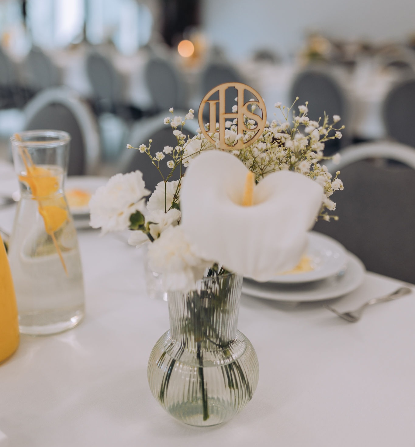 - dekorację kwiatową, świece oraz serwety